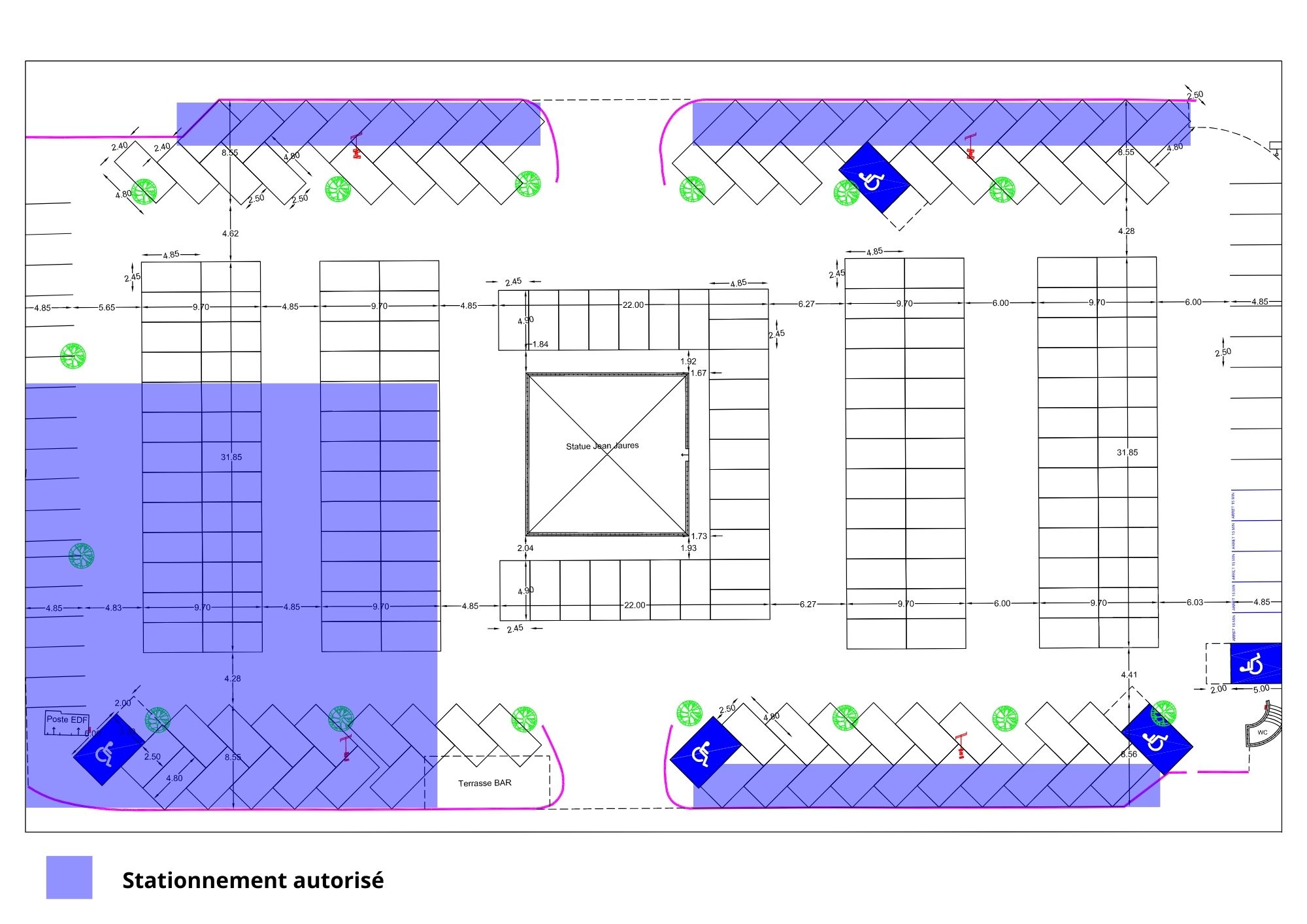 27 janvier - stationnement interdit de part et d'autre des platanes de la place Jean Jaurès du 30 janvier au 2 février