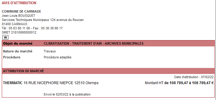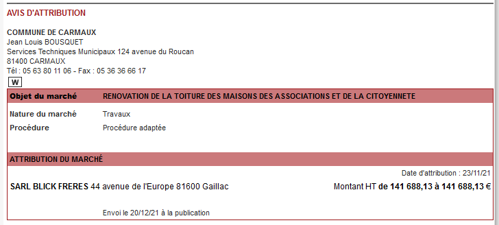 Entrepreneurs, accédez aux appels d'offres publics et mapa (fournitures ou travaux) publiés par la ville de Carmaux.