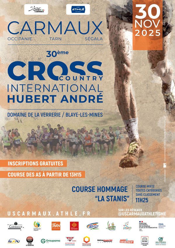 L'US Carmaux Athlétisme organise la 29ème édition du Cross International Hubert André, le 30 novembre 2025 sur le site du domaine de la Verrerie à Blaye-les-Mines.
